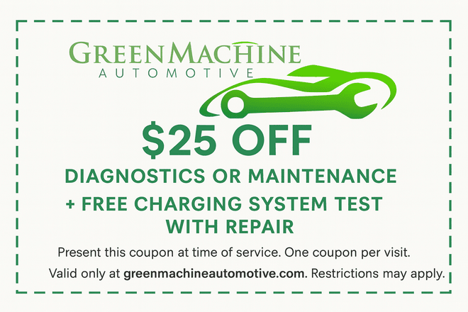 The Green Machine Automotive technicians use the latest technology to not only tell you if there are any issues with your vehicle, but show you. If we uncover an issue the photo will be e-mailed to you for your records. At the end of every visit you will receive a detailed report regarding the general health of your vehicle. Our #1 goal is to keep you safe on the road.